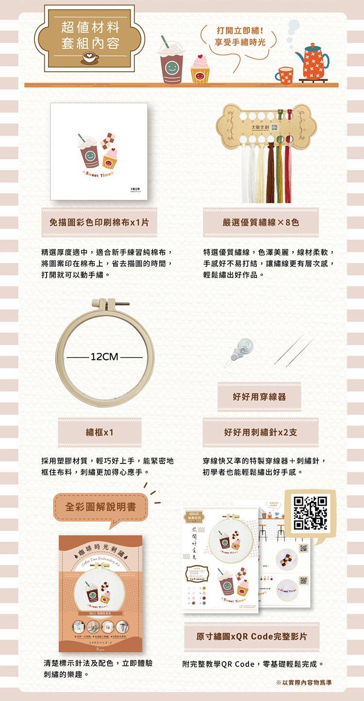 沁涼香甜的冰咖啡,搭配鬆軟的杯子蛋糕,最能撫慰人心!將美好的咖啡時光,化做一針一線繡出閒適自在,享受致日常的刺繡生活。