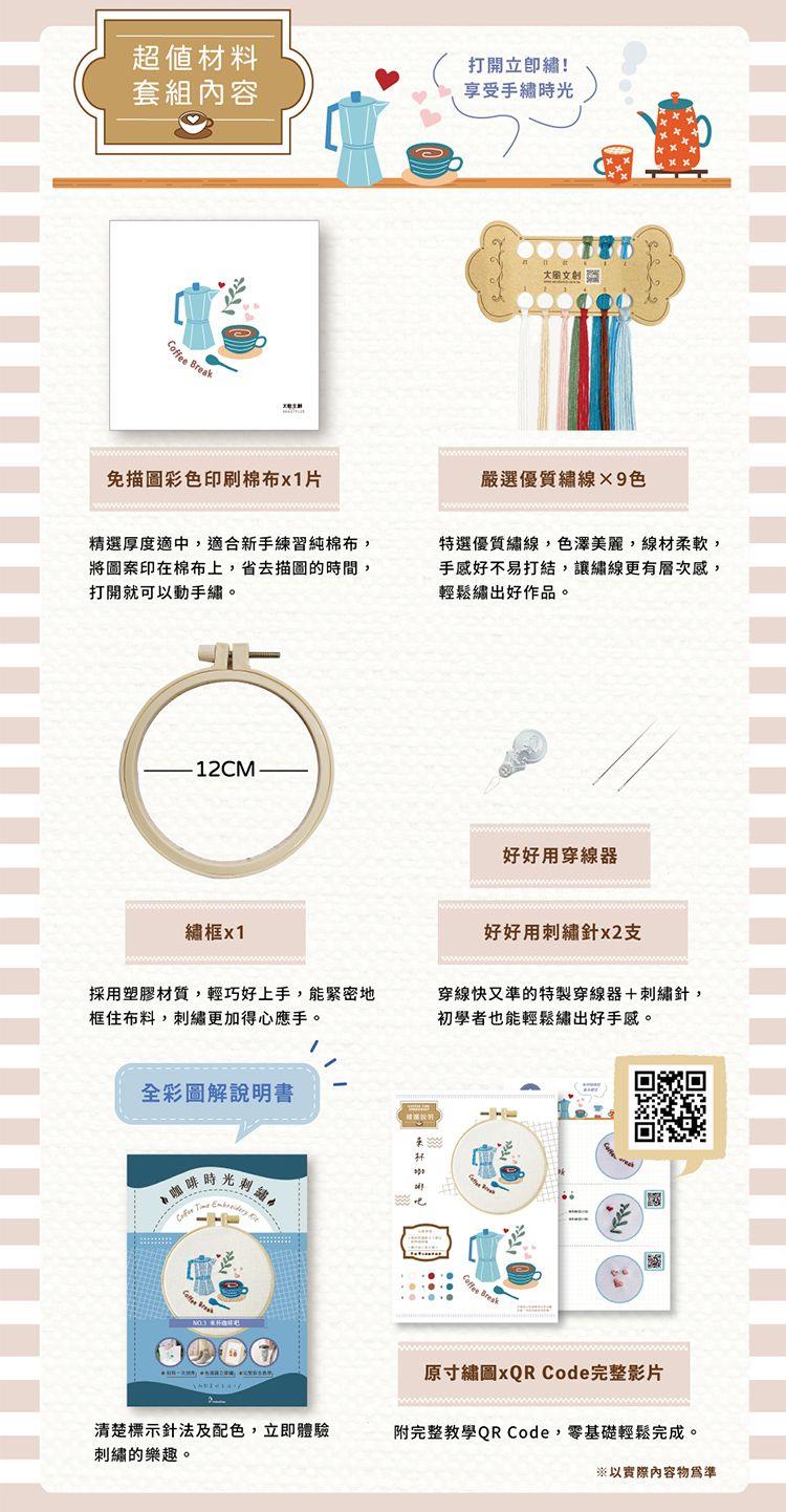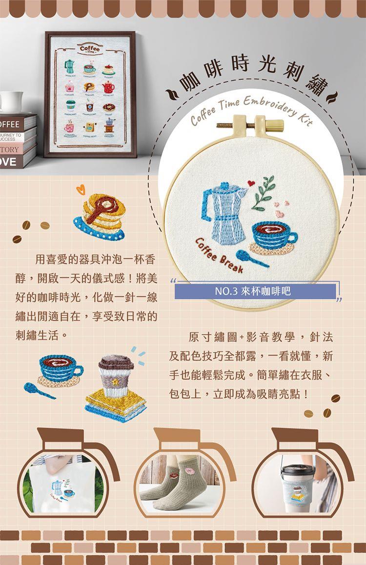 用喜愛的器具沖泡一杯香醇,開啟一天的儀式感!將美好的咖啡時光,化做一針一線繡出閒適自在,享受致日常的刺繡生活。