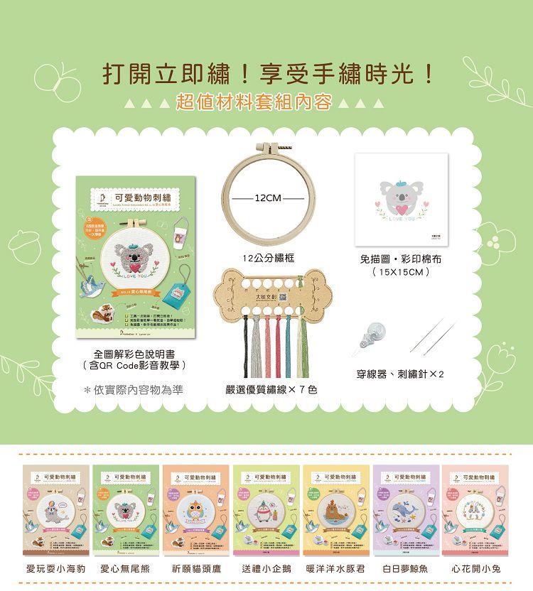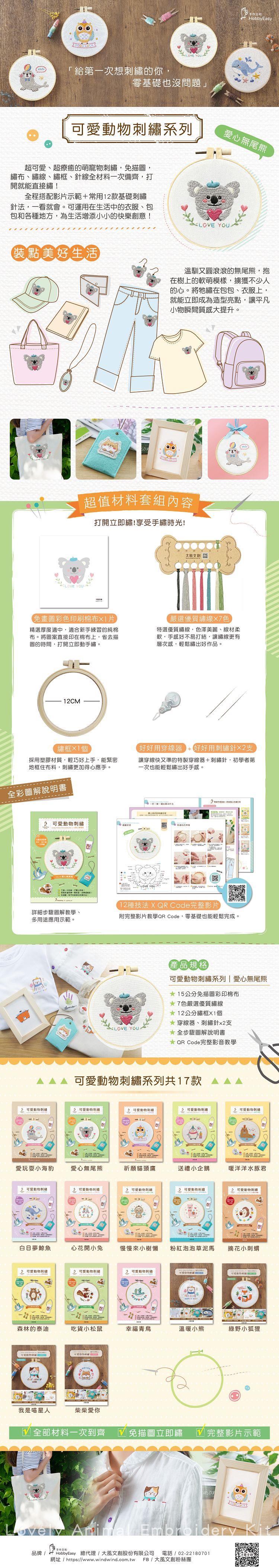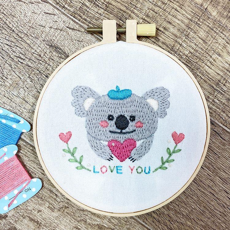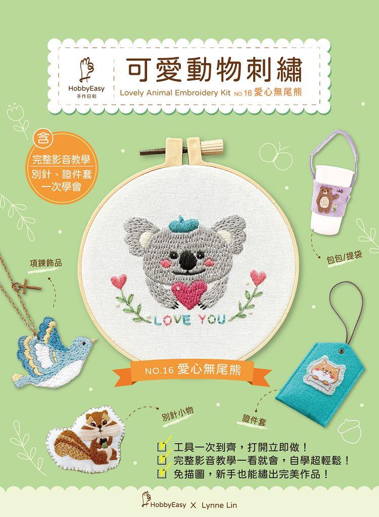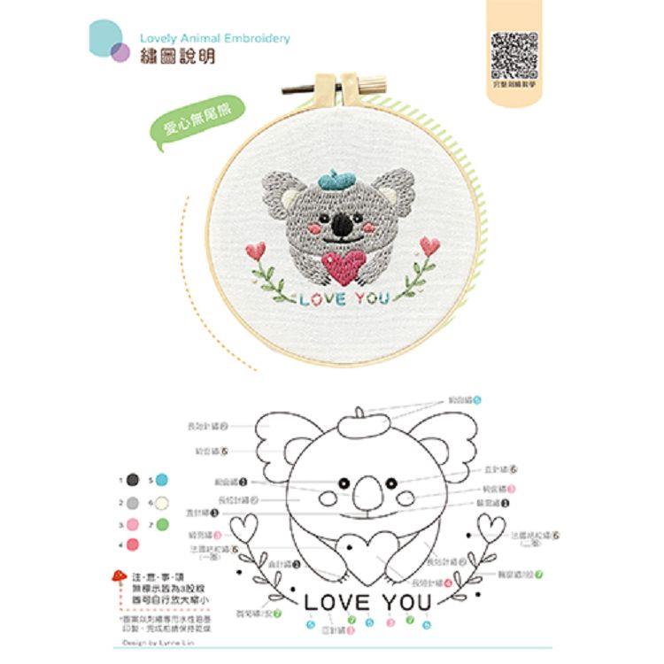 【HobbyEasy】可愛動物刺繡──愛心無尾熊(附超值全材料包套組,含完整教學影片+原寸繡圖)