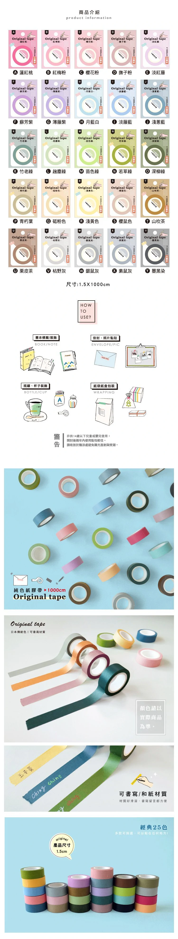 【商品說明】 1.青青 CHOICE系列 CST-426 日日純色書寫紙膠帶(1.5*1000cm) 2.日本傳統25色,質感UP UP|可書寫材質 3. 好撕不傷紙張