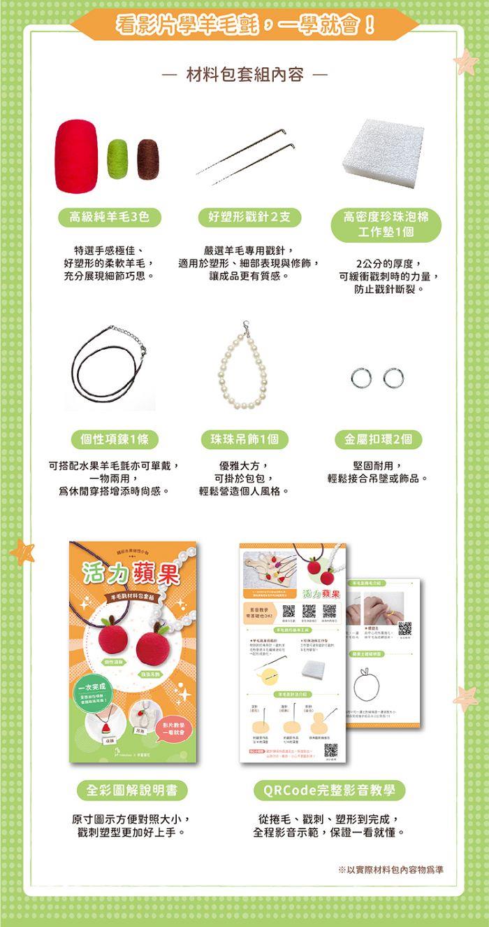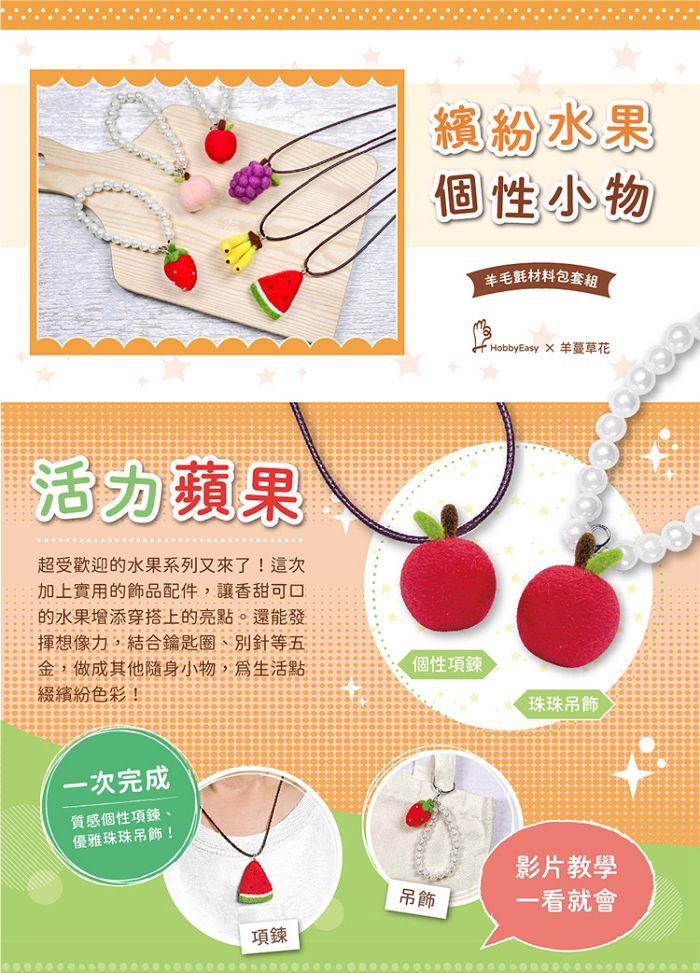 繽紛水果個性小物-活力蘋果(含羊毛氈超值全材料包套組,附項鍊、吊飾,全程影音教學)