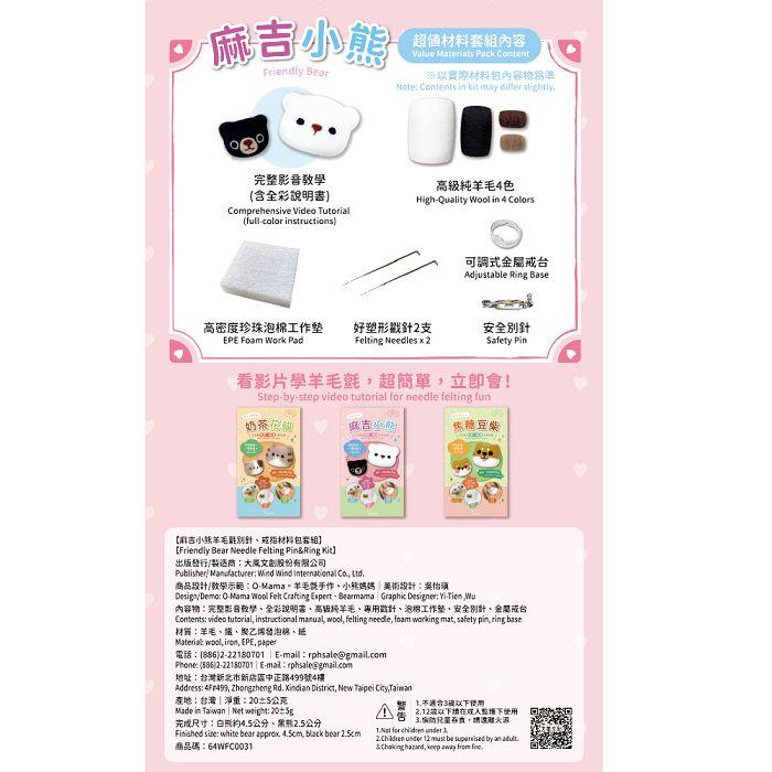 麻吉小熊羊毛氈材料包套組:附別針、戒台,全程影音教學