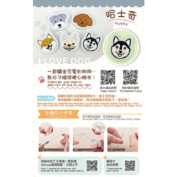 狗狗大集合刺繡別針材料套組:哈士奇(附別針,含全程影音教學)