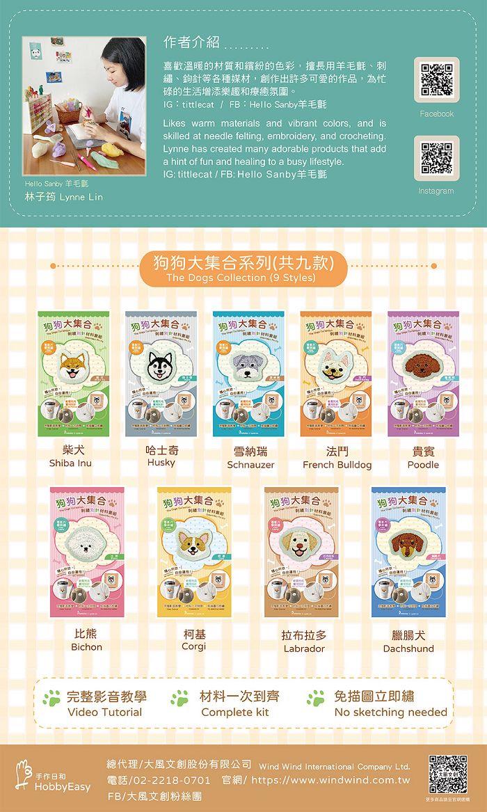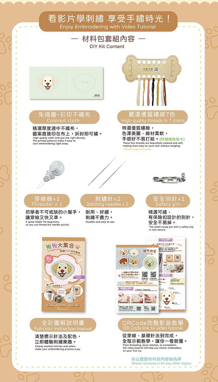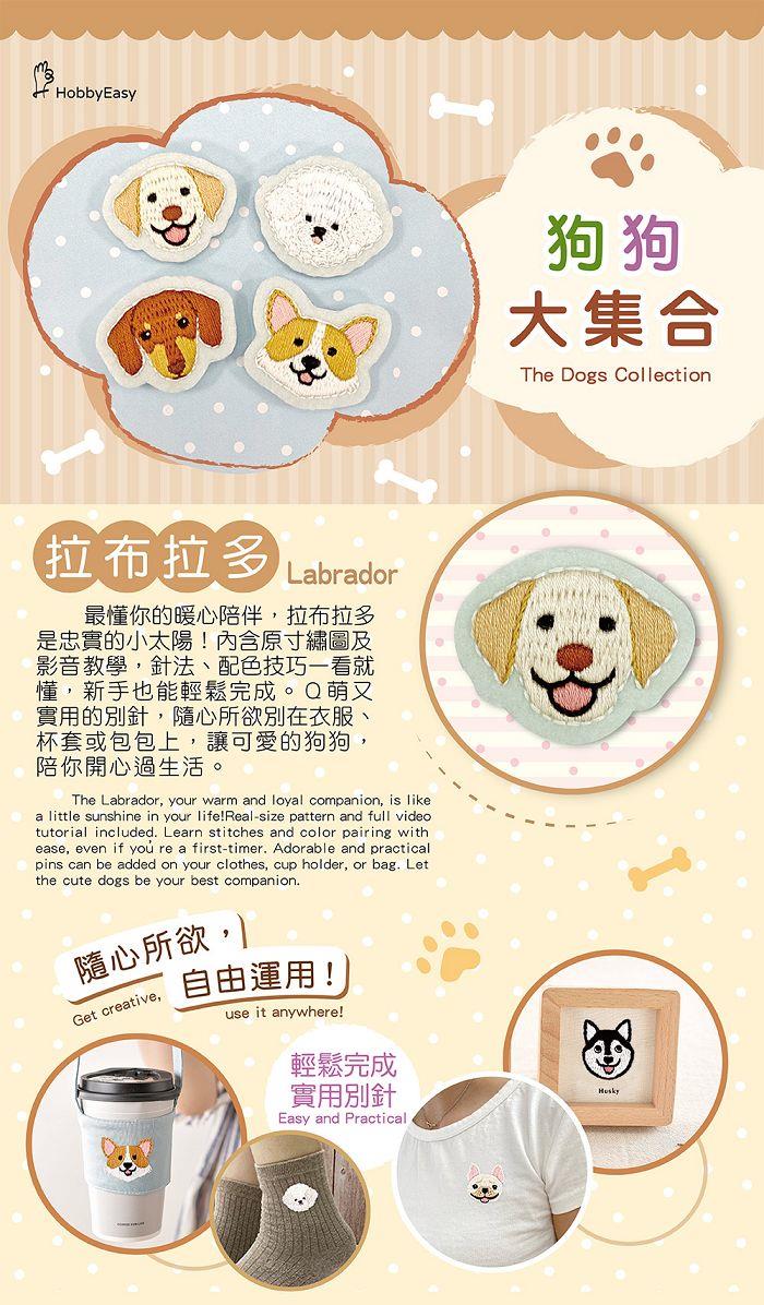 狗狗大集合刺繡別針材料套組:拉布拉多(附別針,含全程影音教學)