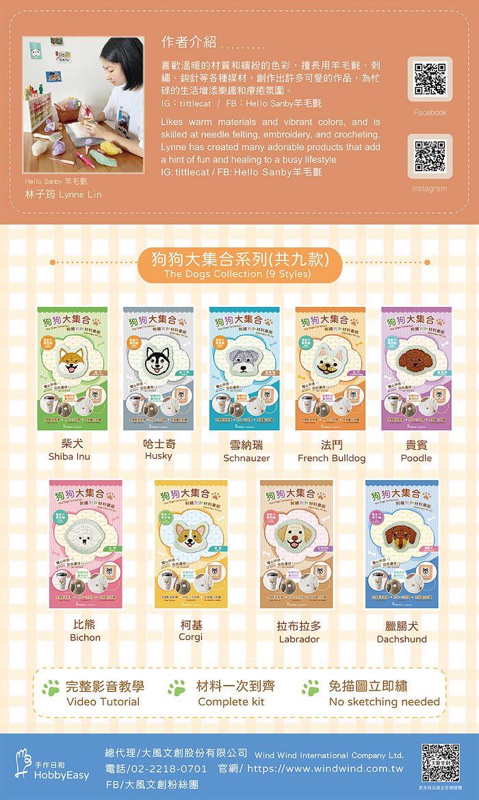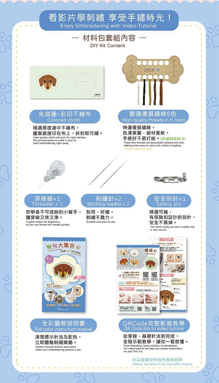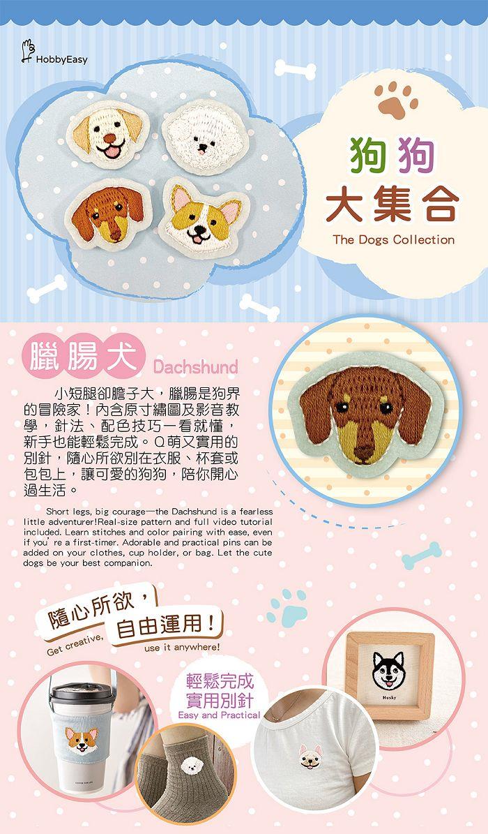 狗狗大集合刺繡別針材料套組:臘腸犬(附別針,含全程影音教學)