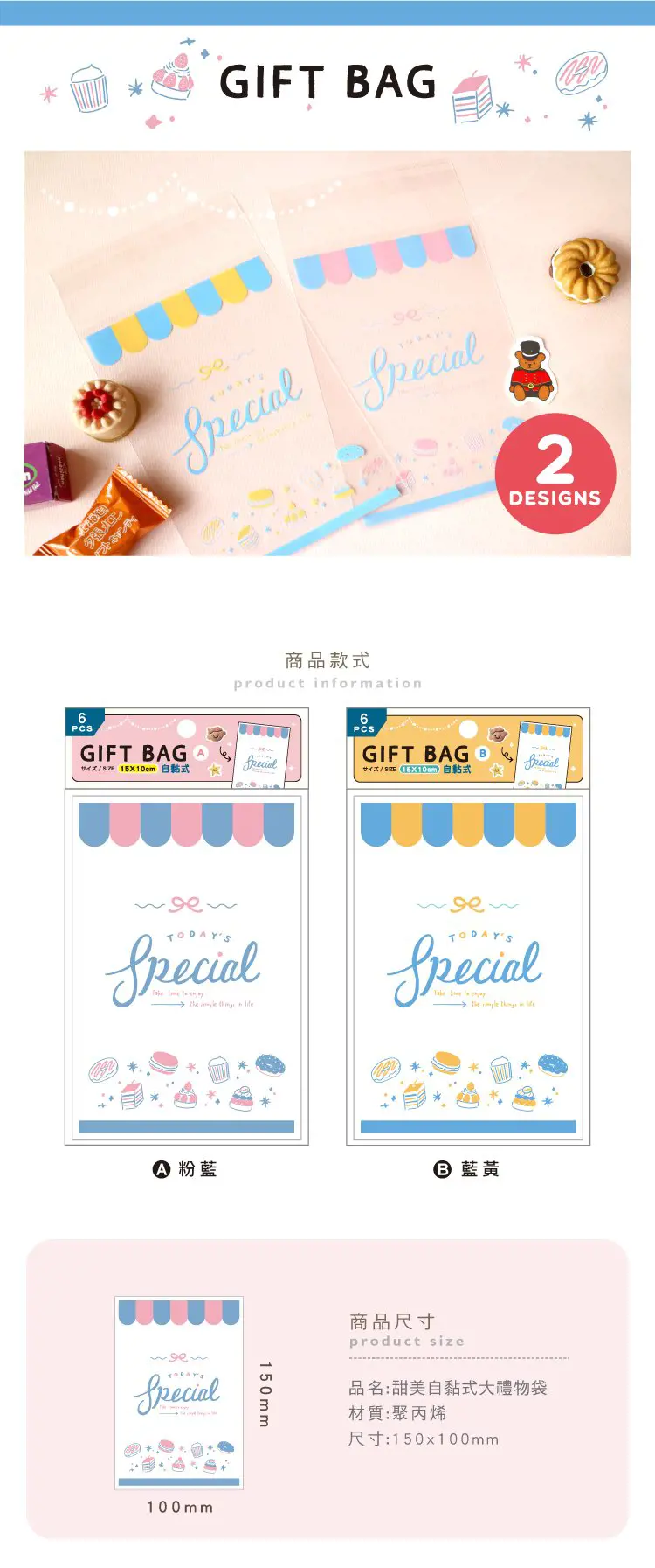 1. 青青 簡單生活系列 CBG-573 甜美自黏式大禮物袋 6入(150*100*0.1mm)