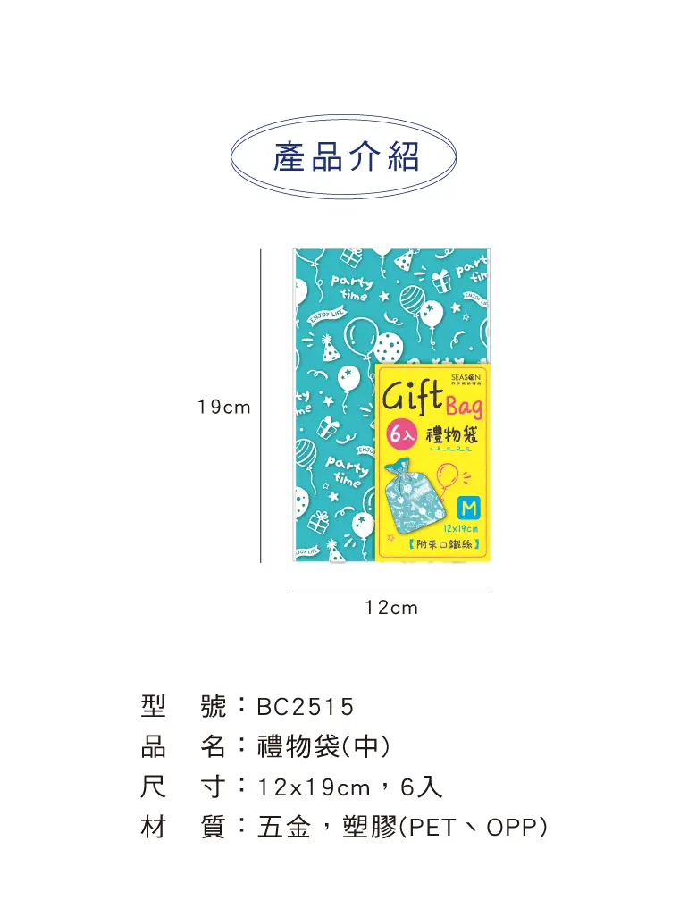 § 規格:12x19cm,6入。