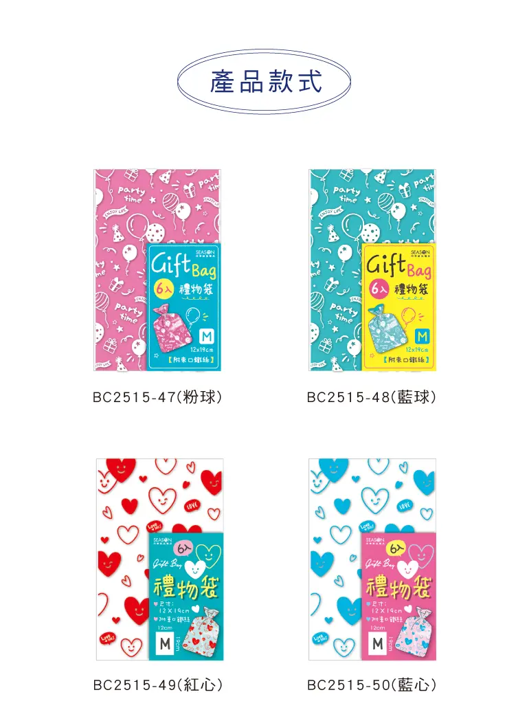 § 每款內含6個袋子與束口鐵絲。