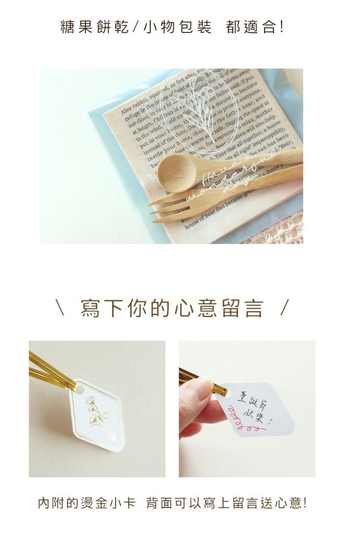 ➤ 每包含禮物袋+燙金小卡+飾帶 各5份