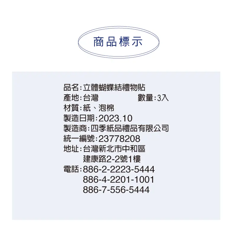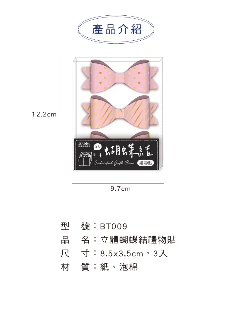§ 規格:8.5x3.5cm,3入裝,2種款式。