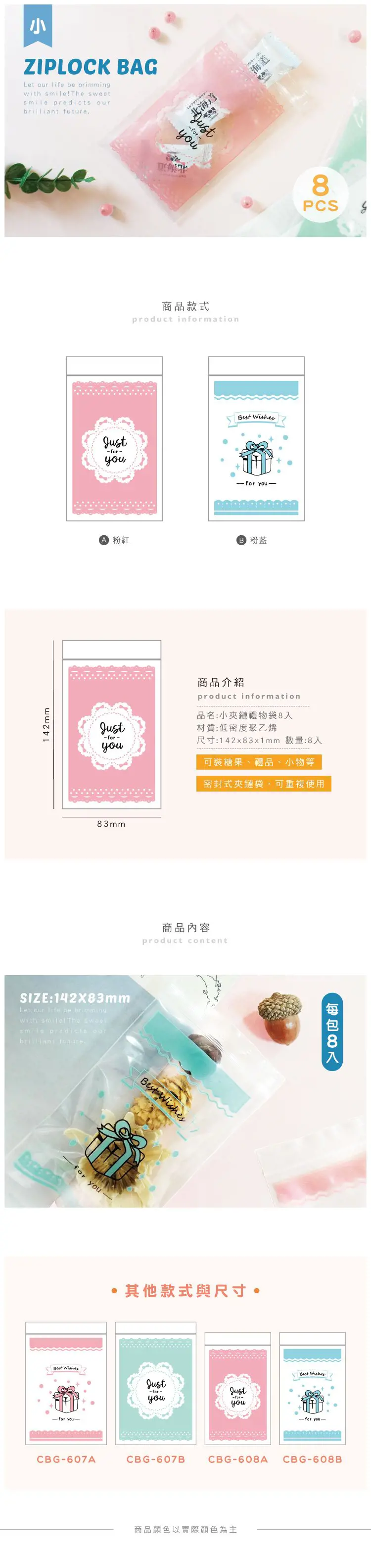 1. 青青 簡單生活系列 CBG-608 小夾鏈禮物袋8入(142x83x0.1mm)