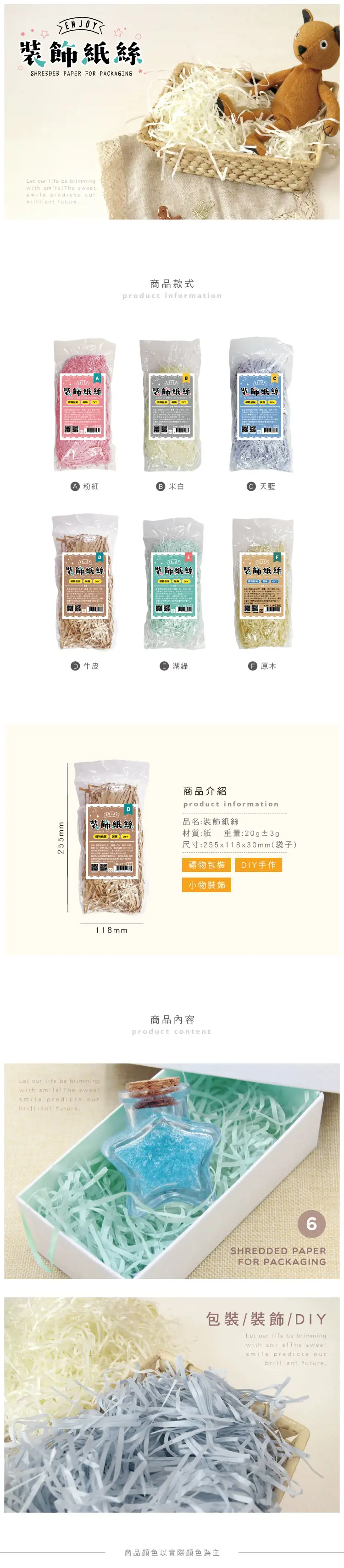◎可用於禮物包裝、裝飾、DIY手作【商品說明】 1.青青 簡單生活系列 CW-72 裝飾紙絲(1包約20克±3克)