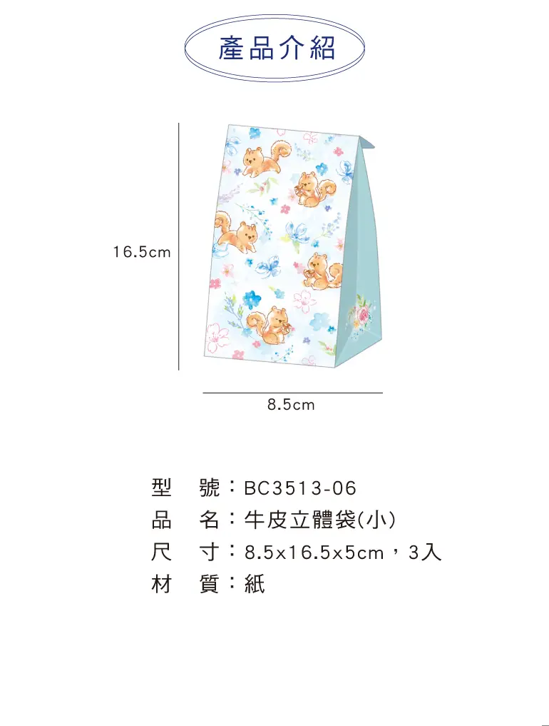 牛皮立體袋(小)-松鼠藍