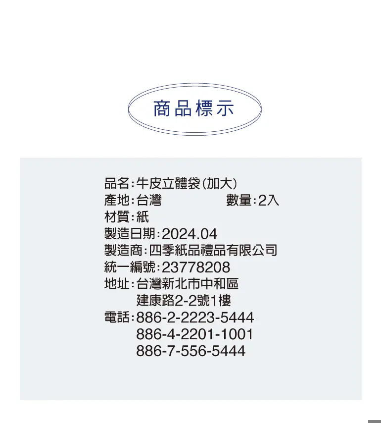§ 附2張圓形封口貼紙。