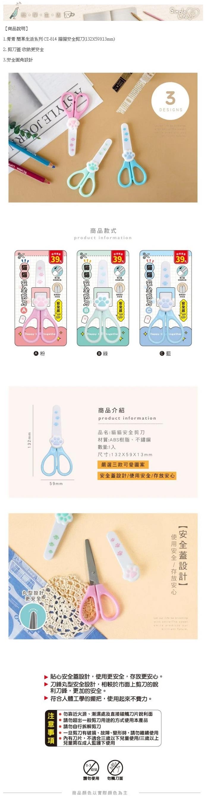 ◎青青 簡單生活系列 CZ-814 貓貓安全剪刀(132X59X13mm)