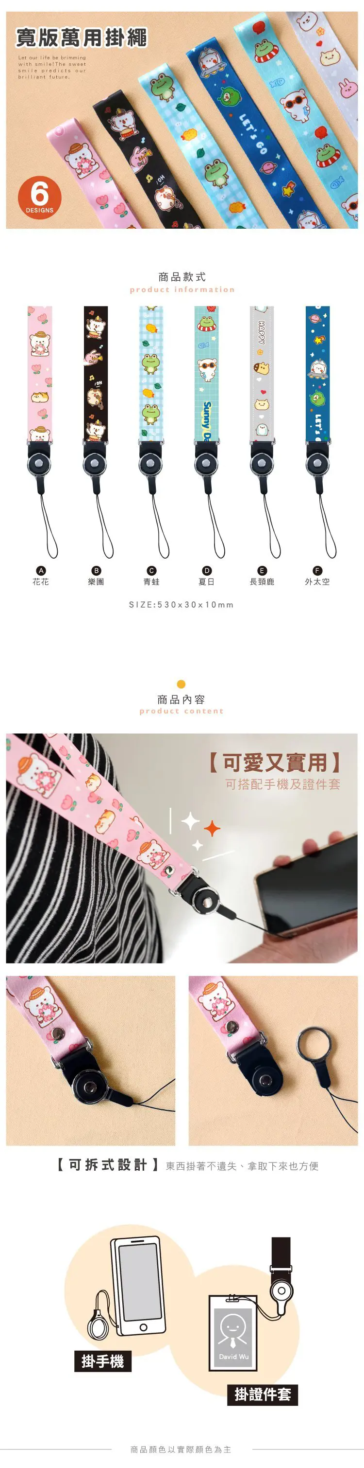 1.青青 萌ZOO系列 CP-339 寬版萬用掛繩(530X30X10mm) 2.嚴選6色/圖案多樣可愛 3.可吊掛手機、當證件繩等... 4.雙面彩色印刷,想怎麼掛就怎麼掛~~