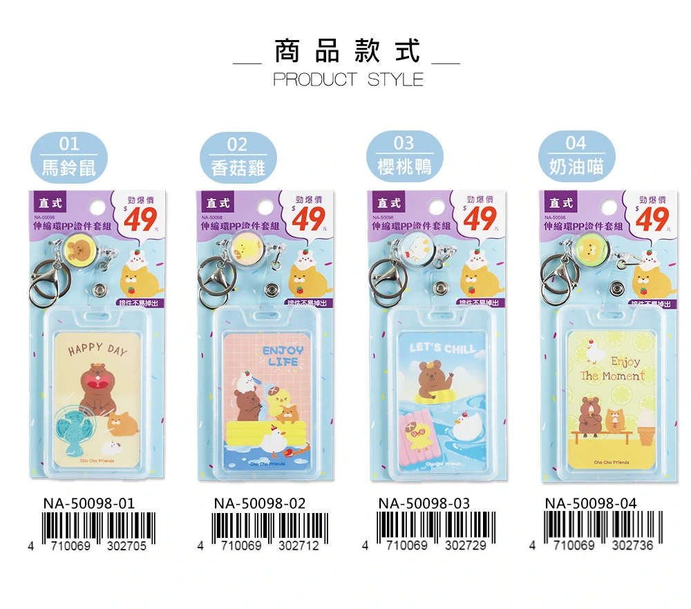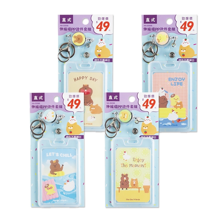 (特價)伸縮環PP證件套組(直)-奶油喵