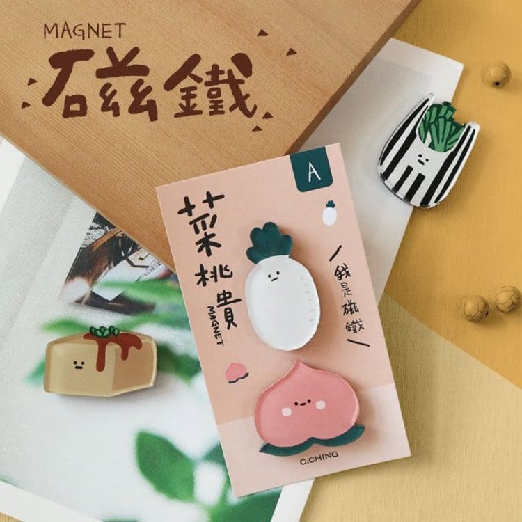1.青青 簡單生活系列 CGC-338 小呸角創意磁鐵2入 (A.菜頭43x24x5、桃子37x32x5mm/B.鮭魚卵飯糰36x33x5、飯糰君36x29x5mm C.炸蝦42x24x5、臭豆腐39x25x5mm/D.大蒜37x35x5、裝蒜君40x29x5mm)