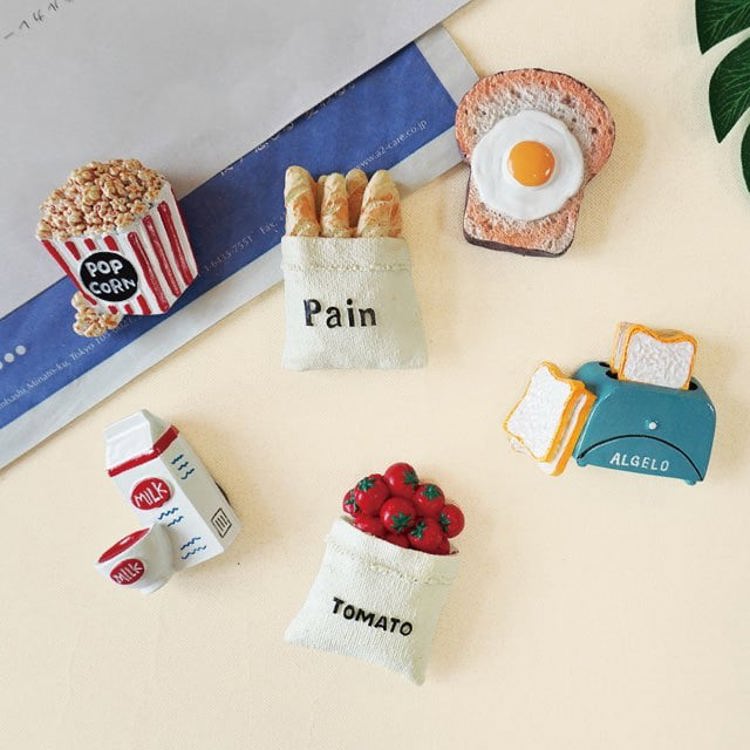 1.青青 簡單生活系列 CZ-766 立體仿真磁鐵 (A.法棍麵包45x64x19mm/B.番茄45x65x19mm/C.牛奶42x53x19mm D.烤吐司60x48x19mm/E.吐司蛋51x57x11/F.爆米花41x47x22mm)