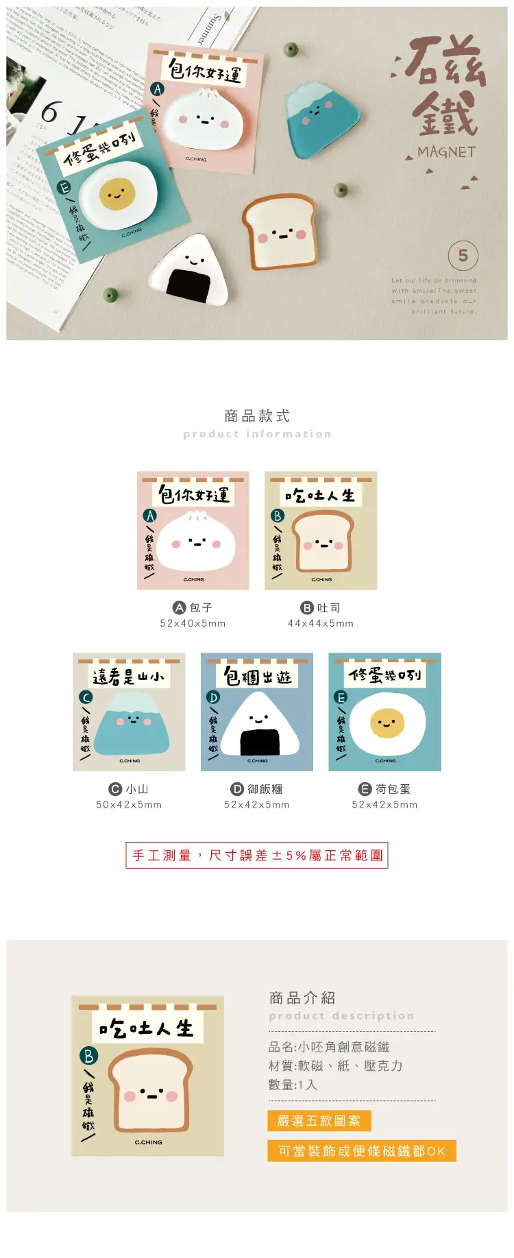 【商品說明】 1. 青青 小呸角系列 CGC-353 小呸角創意磁鐵 (A.52x40x5mm、B.44x44x5mm、C.50x42x5mm、D.52x42x5mm 、E.52x42x5mm )