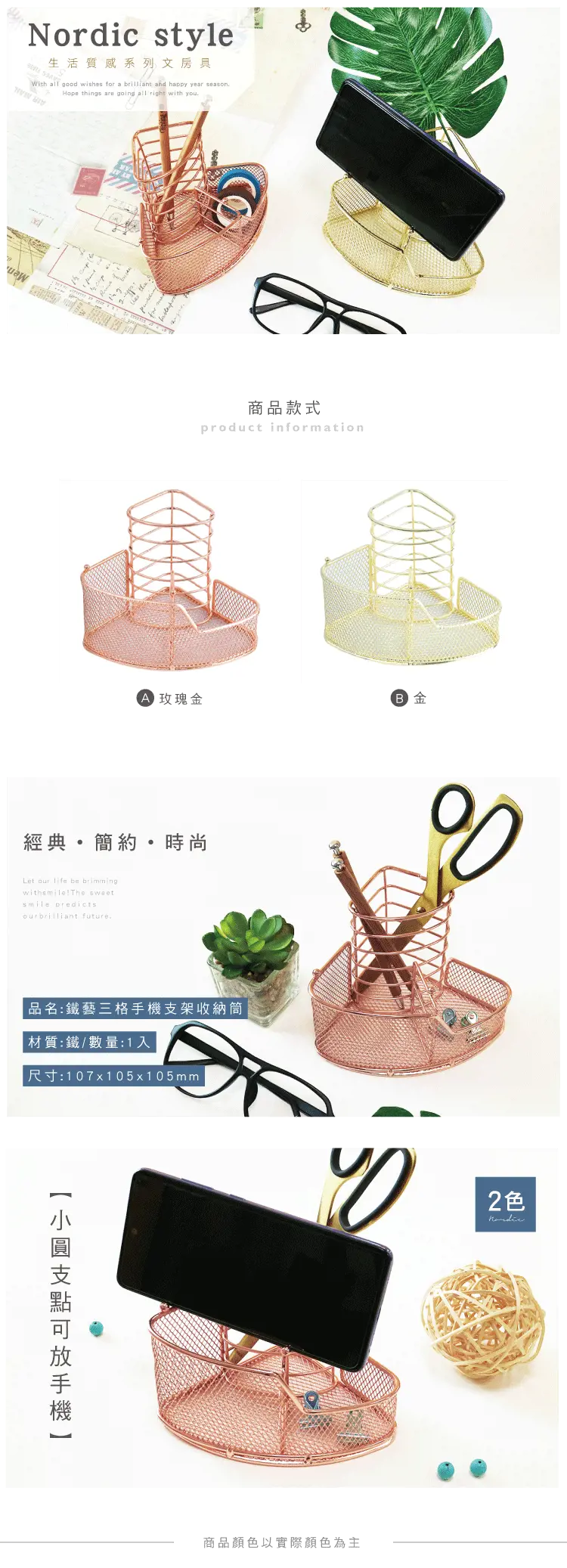 ◎青青 簡單生活系列 CZ-682 鐵藝三格手機支架收納筒(107X105X105mm)