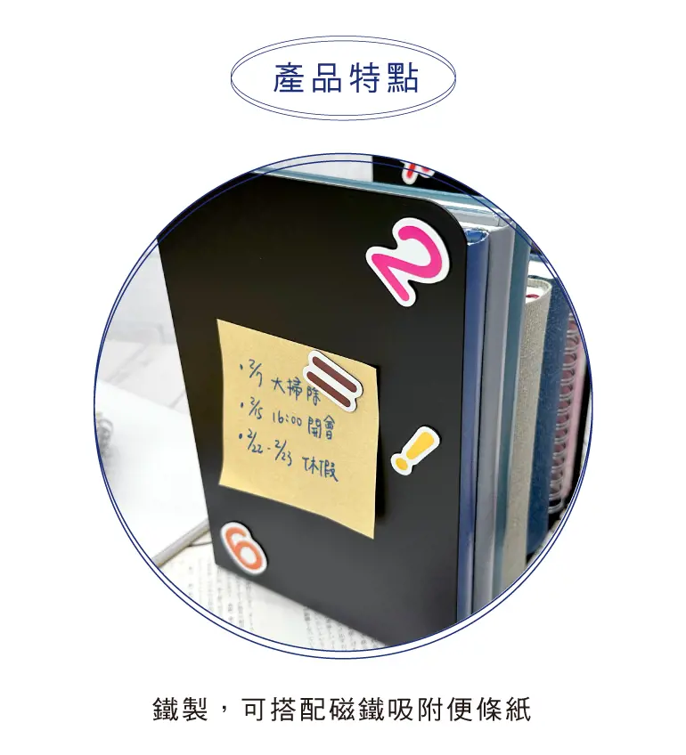 § 鐵製,可搭配磁鐵吸附便條紙,底部附止滑海綿。