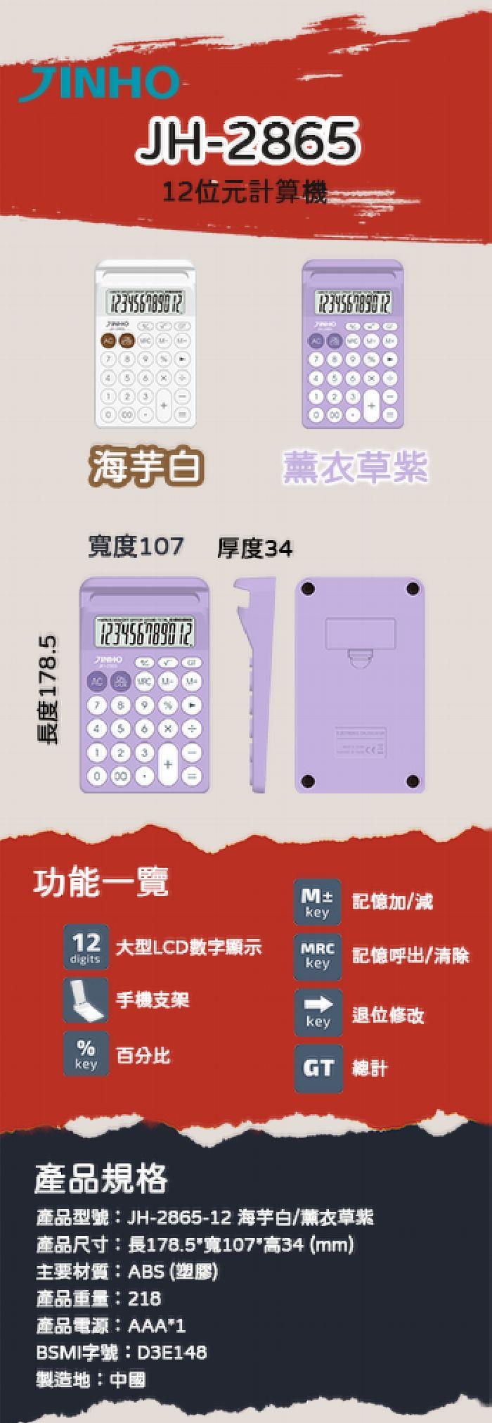 JH-2865-12/位元手機支架計算機-白