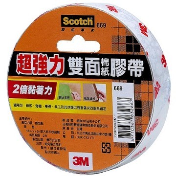 3M 超強力雙面棉紙膠帶12mmX5Y(669)