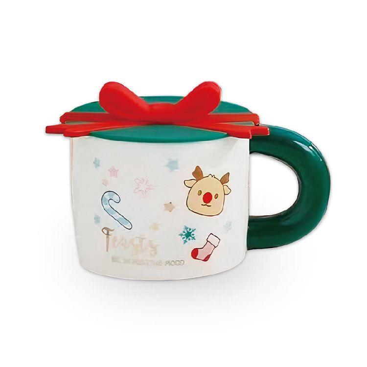 (特價)聖誕蝴蝶結蓋馬克杯(麋鹿)