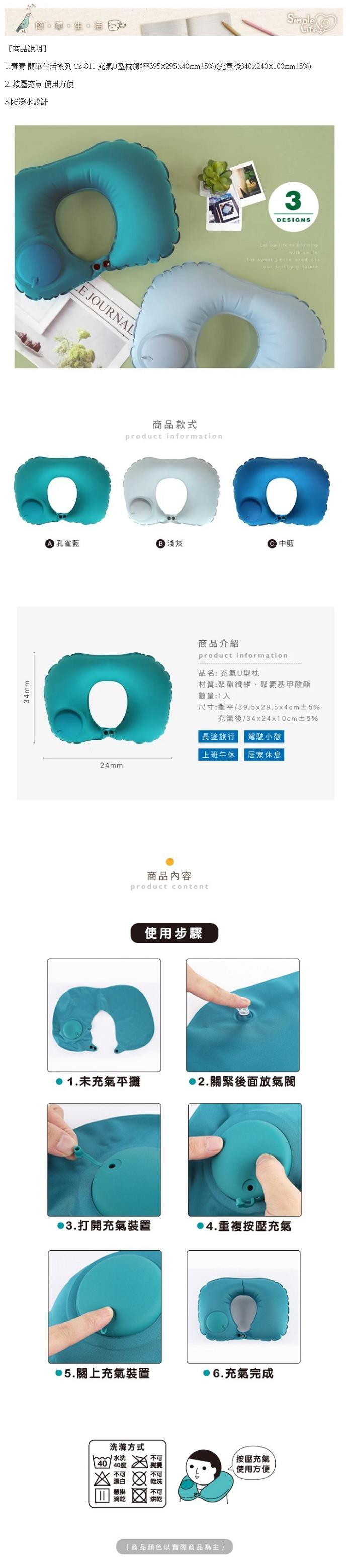 ◎青青 簡單生活系列 CZ-811 充氣U型枕(攤平395X295X40mm±5%)(充氣後340X240X100mm±5%)