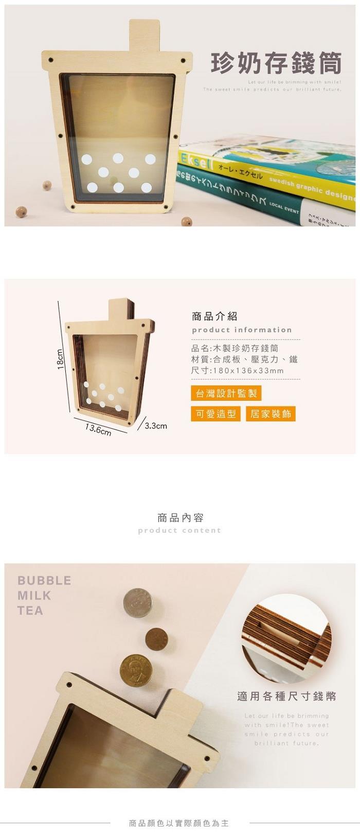 ◎青青 簡單生活系列 CZ-840 木製珍奶存錢筒(180x136x33mm)