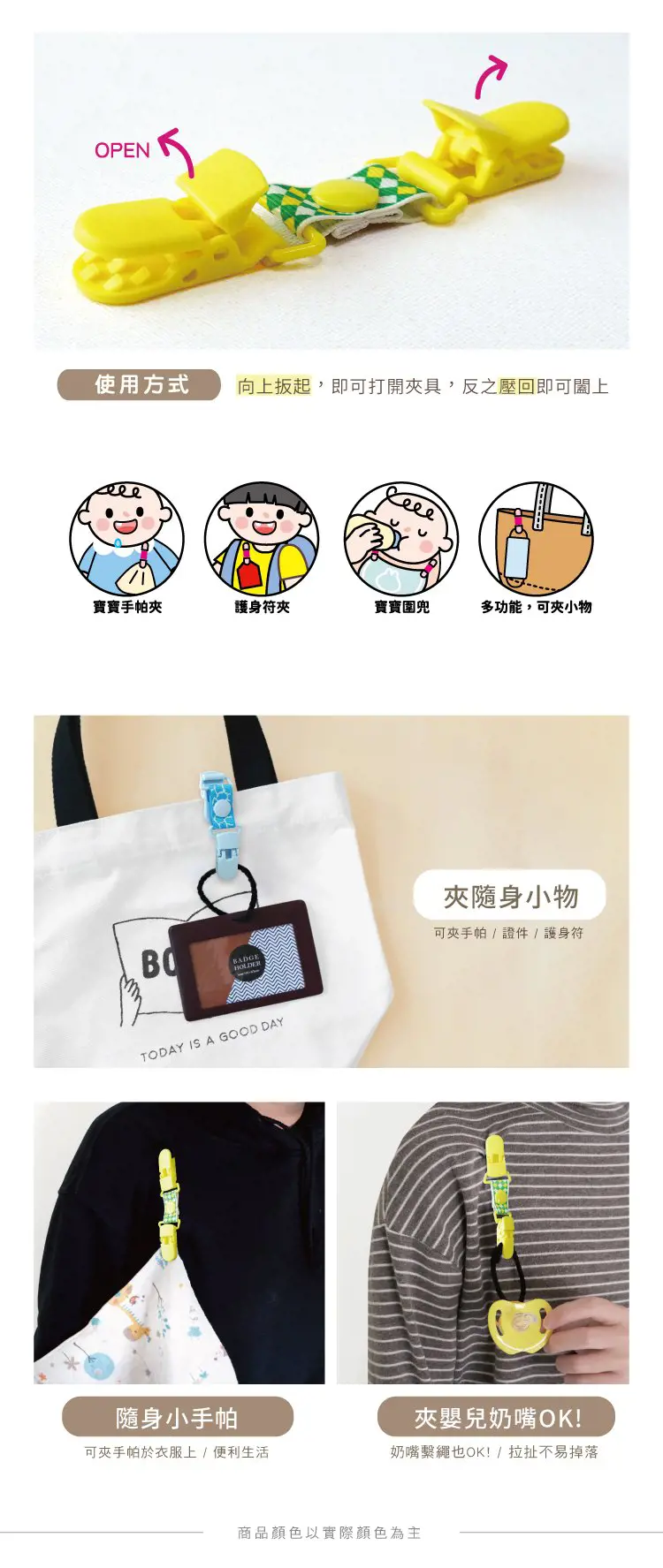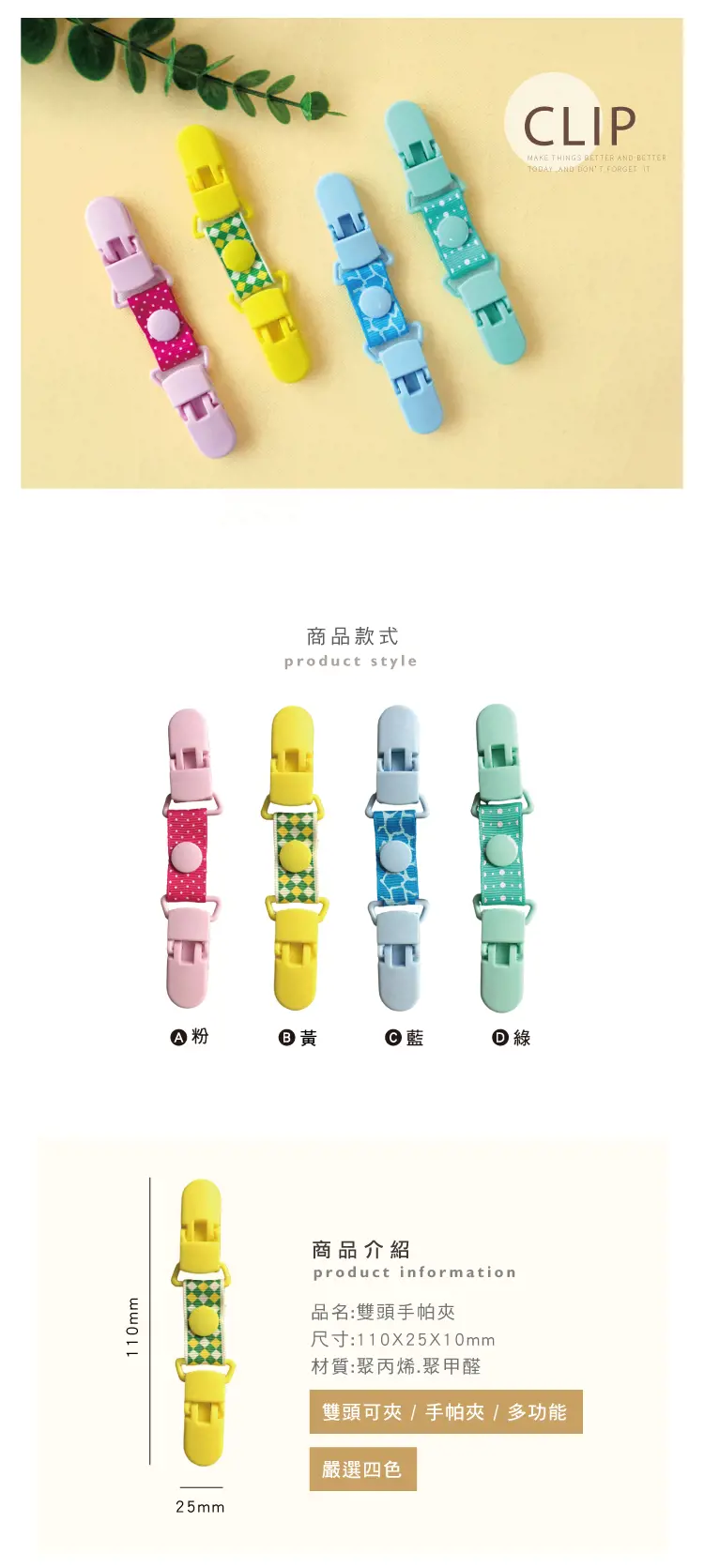 【商品說明】 1.青青 簡單生活系列 CAE-237 雙頭手帕夾夾(110X25X10mm±5%) 2. 雙頭皆可夾物品 3.可夾隨身小物 / 口水巾 /   小手帕 4.兩側扳起即可打開 5. 四種清新配色可選