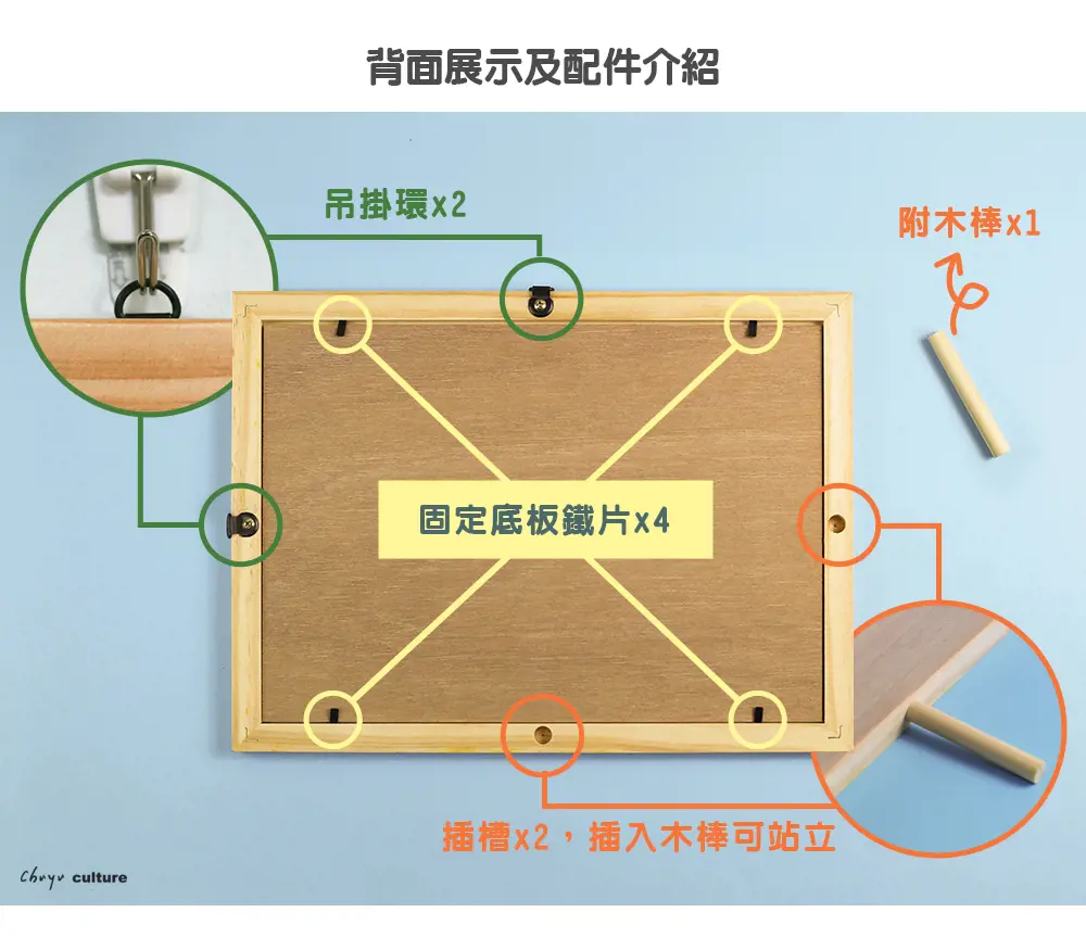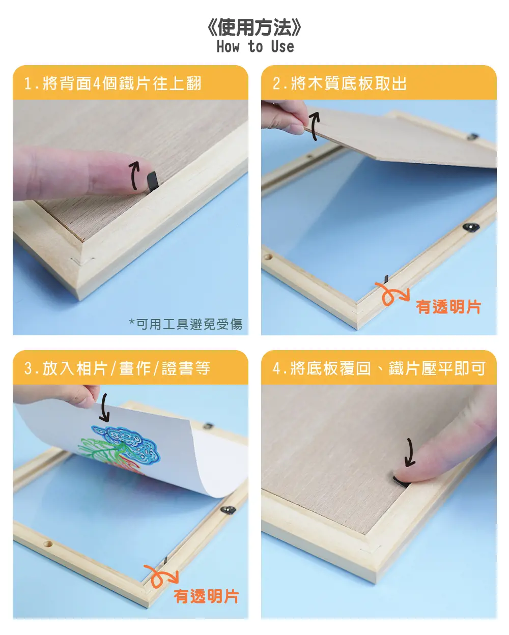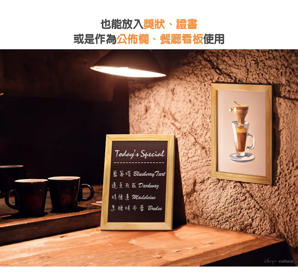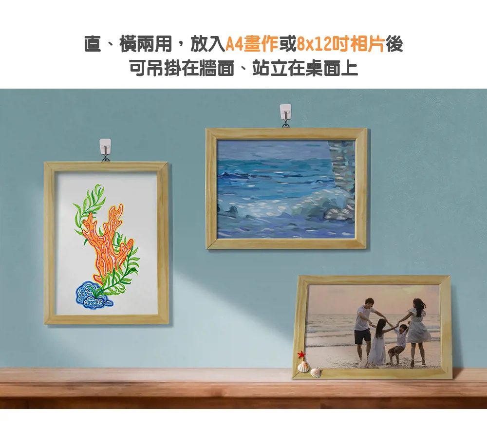 - 可放入8x12相片、A4畫作、證書、獎狀等,也能作為公佈欄使用