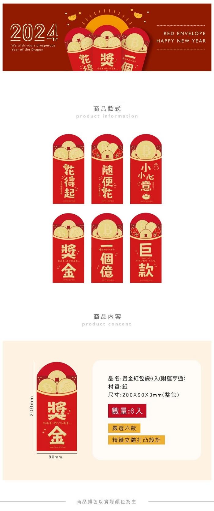 ◎青青 節慶系列 CP-361 燙金紅包袋6入(財運亨通)(整包/200X90X3mm)