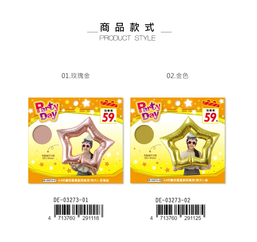 (特價)44吋鏤空星星鋁箔氣球(特大)-玫瑰金