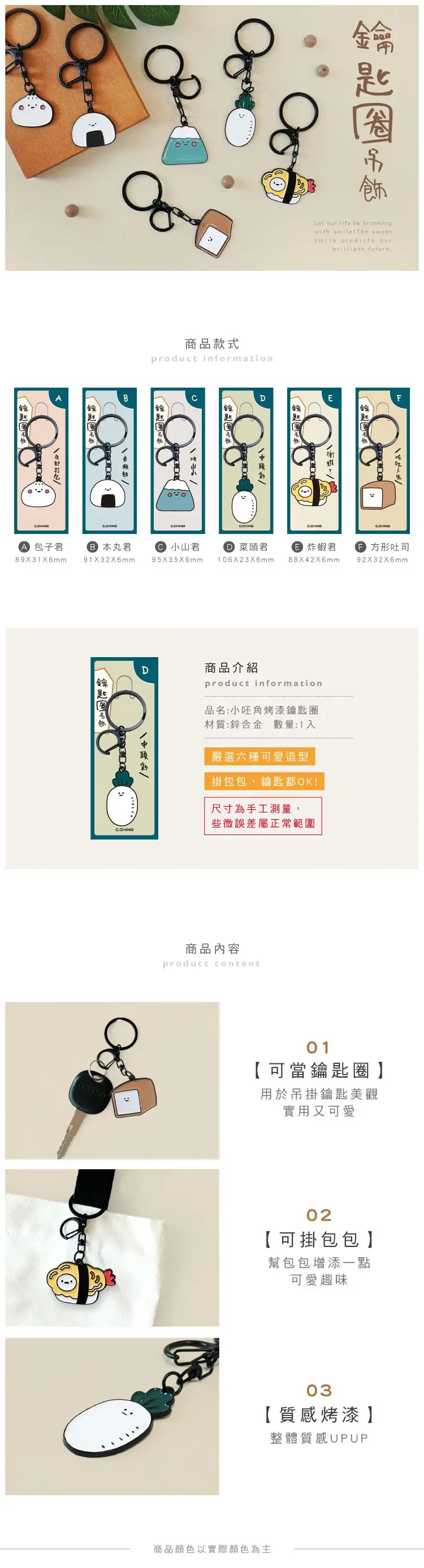 【商品說明】 1. 青青 小呸角系列 CAE-235 小呸角烤漆鑰匙圈(每款尺寸不同請參照商品介紹) 2. 嚴選6款可愛圖案
