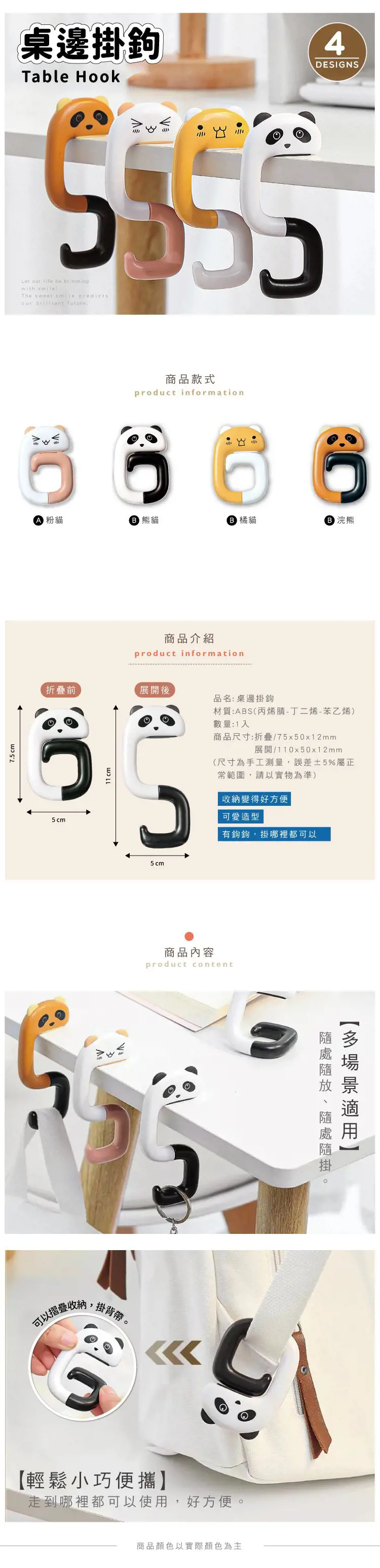1. 青青 簡單生活系列 CZ-822 桌邊掛鉤(折疊/75X50X12mm,展開/110X50X12mm)