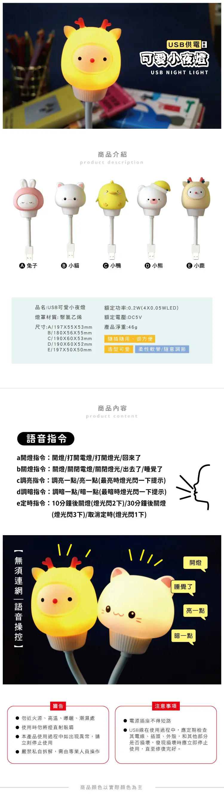 1.青青 簡單生活系列 CZ-734 USB可愛小夜燈 (A.197x55x53mm/B.180x56x55mm/C.190x60x53mm/D.190x60x52/E.197x50x50mm)