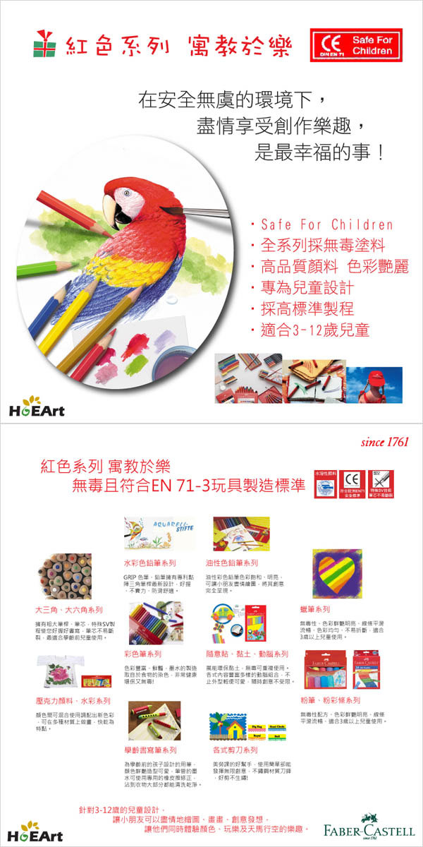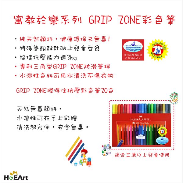 1.三角造型防止疲累感 2.舒適握區好拿不易滑動 3.可承受3公斤重量 4.透氣筆蓋 5. 墨水的製造取自於食物的染色 6.沾染到大部分質料的衣物皆可洗淨 7.顏色明亮 8.20色