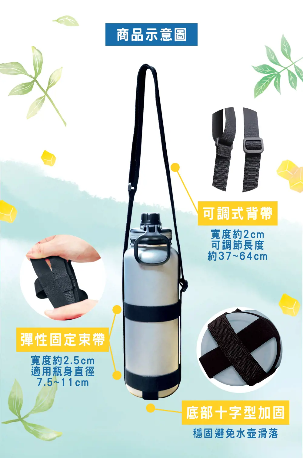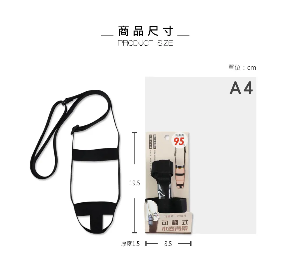 • 彈性固定束帶,適用瓶身直徑7.5~11cm
