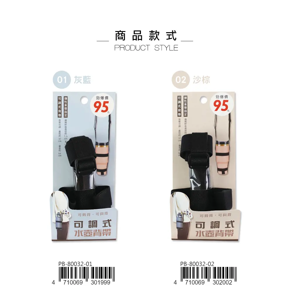 (特價)可調式水壺背帶-沙棕