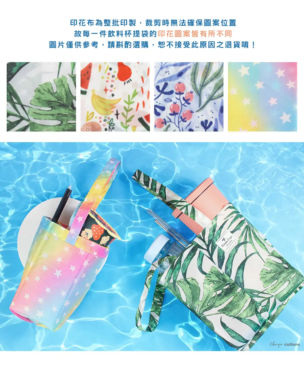 (特價)花布單雙兩用飲料杯袋-夏葉