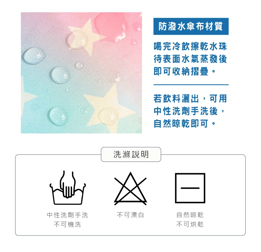 - 防潑水傘布材質,輕盈強韌、方便整理