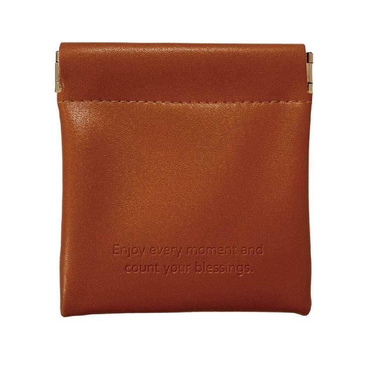 簡單生活-9x9cm皮革彈片收納袋(棕色)