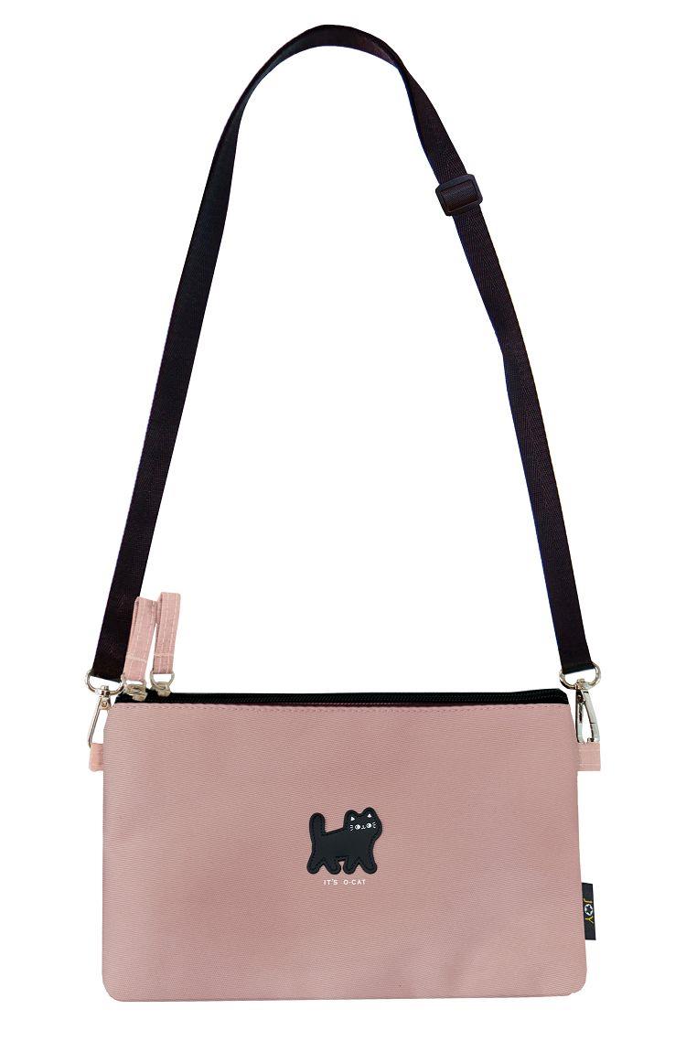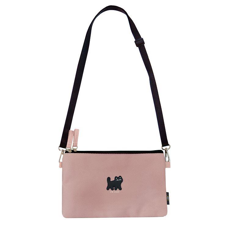 貓咪 滴柱三明治雙拉鍊隨身包 粉