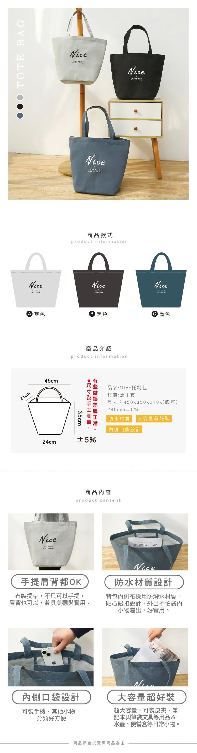 【商品說明】 1. 青青 簡單生活系列 CZ-921 Nice托特包(450x350x210x(底寬)240mm±5%(展開)) 2.嚴選四種顏色 3.大容量超好裝