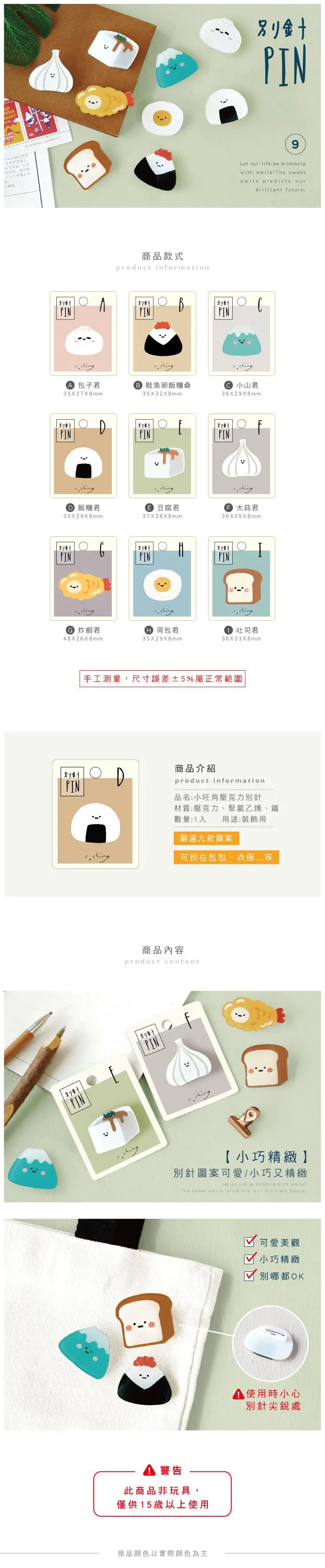 【商品說明】 1. 青青 小呸角系列 CAE-222 小呸角壓克力別針(每款尺寸不同請參照商品介紹) 2. 可愛小巧又美觀