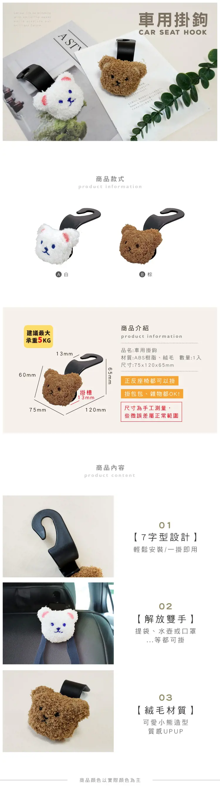 【商品說明】 1. 青青 簡單生活系列 CZ-917 車用掛鉤(75x120x65mm) 2. 正反座椅都可以掛 3. 掛包包、雜物都OK!