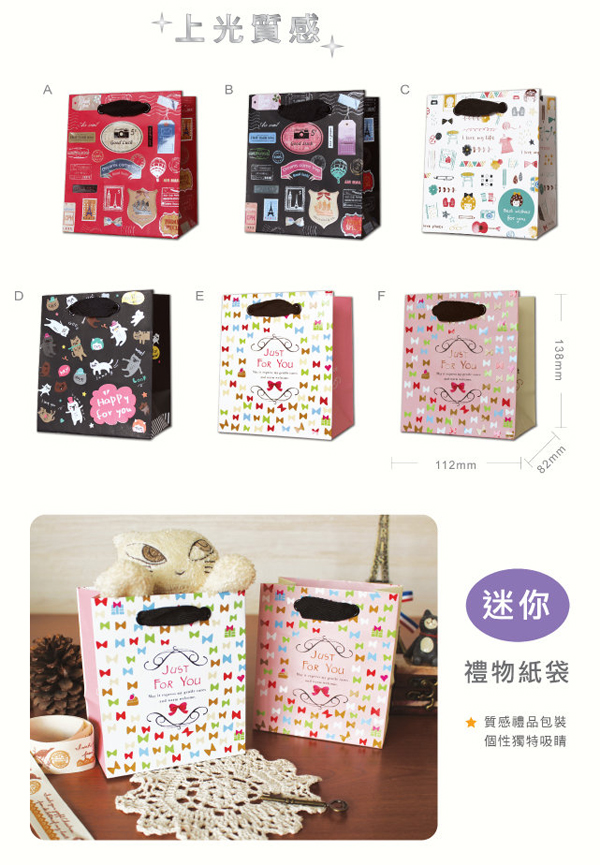 *迷你手提紙袋 可愛迷你紙袋,六款不同設計可選,精緻上光質感,為您獻上最特別的心意!