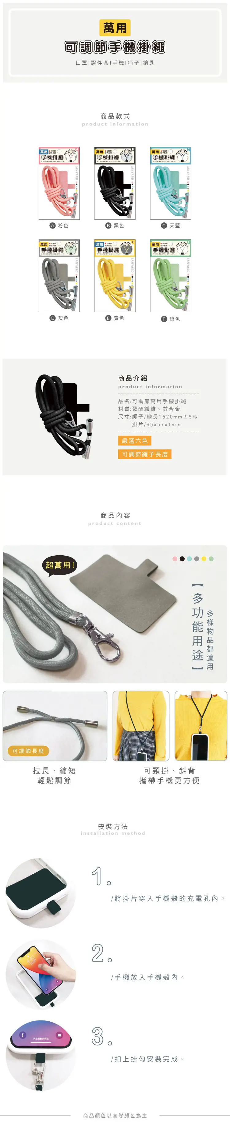 1.青青 簡單生活系列 CP-342 可調節萬用手機掛繩       (繩子總長1520mm±5%/掛片65X57X1mm)